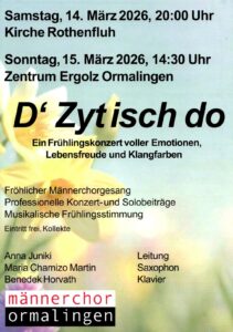 Trotz einiger krankheitsbedingter Absenzen im Kreis der Jubilare folgten erfreulicherweise viele unserer Einladung. Daniel Mentes vertrat unsere Dirigentin Anna, die leider ebenfalls erkrankt war, mit grossem Engagement und Können. Das Publikum zeigte sich sehr erfreut über unsere Darbietungen und belohnte diese mit herzlichem Applaus. Auch das anschliessende Apéro fand wie gewohnt grossen Anklang und bot Gelegenheit für gemütliche Gespräche und Begegnungen.